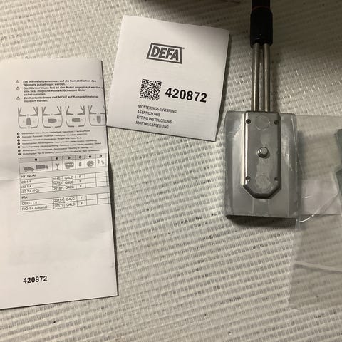 Käyttämätön Defa lohkolämmitin numerolla 411350. Käy mm. Mitsubishi 3,0, 3,5, 3,8. Kia 3,5. Hyundai 3,0, 3,5. Ford Fiesta 1,0, 1,1, 1,3. Chrysler Stratus 2,5. Halkaisija 41mm.