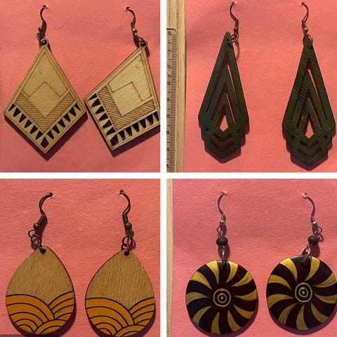Puiset korvakorut jossa sateelta suojautuvat lokit. Huom. Koruissa ei ole koukkuja.
