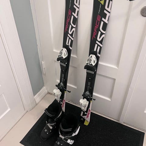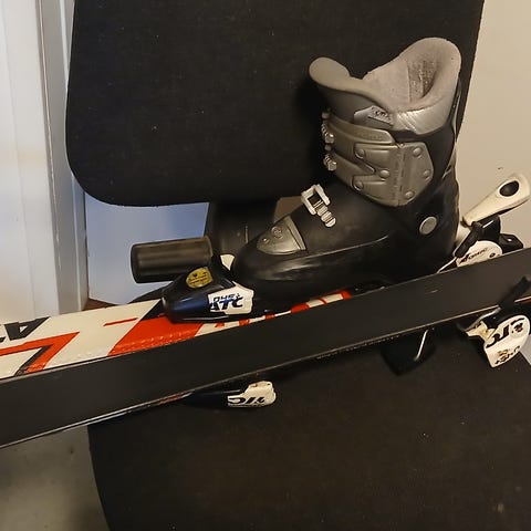 Hyvä kuntoiset lasten Atomic redster 100cm sukset ja rossignol powah 32 monot (mondopoint20.5) sekä etto kypärä kaupan päälle.