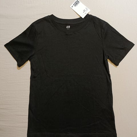 Tummanharmaa, musta ja vaaleanharmaa 122/128 cm trikoopaidat 100% luomupuuvillaa.