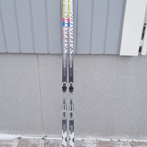 Myydään Salomonin Equipe 8X jr skate sukset Rottefellan NNN-siteillä.