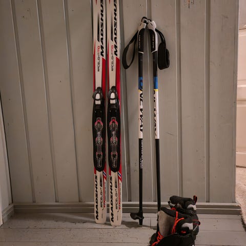 Sukset: Karhu Junior Novus, 130cm, Rottefella NNN siteillä(vipu mekanismi), pohjassa "pitouritus" parantamaan vauhtia. Pieniä käytönjälkiä löytyy