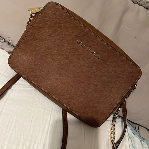 Michael Korsin harmaa jet set crossbody laukku hopeilla yksityiskohdilla. Takaosassa pinnassa hieman tummentumaa (näkyy viimeisessä kuvassa).