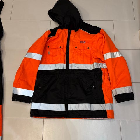 Takin tiedot: pituus 87 cm, olkasauma 18 cm, rinnan ympärys 124 cm, takin alaosan ympärys 124 cm, hiha 62 cm. Vahva kahdesta suunnasta avautuva vetoketju , resori hihansuissa. Huppua ja vyötäröä voi kiristää. Ulkopuolella neljä taskua, joista kaksi tarrakiinnitteistä, sisäpuolella yksi tasku. Takin vuori paksu, sama joka näkyy hupussa. Heijstinnauhat.