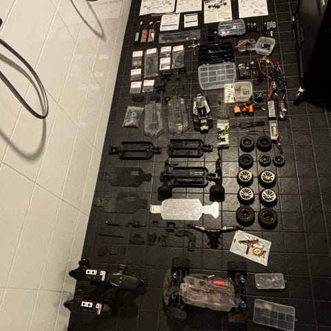 ARRMA RC 1/10 GRANITE MEGA 550 4X4 RTR BRUSHED MONSTER TRUCK. Tämmöne löytyis priima kunnossa muuten mutta kopassa on jälkiä kun sillä on hypelty hyppyreistä ja hetki sitten vaihdettu uusi moottori. Huippunopeus taisi olla noin 48kmh. Ohjaimesta saa säädettyä tehoa. Kaksi akkua tulis mukana niin riittää noin puoleksitunniksi täyttä ajoa virta sitten tulee pikaälylaturi lataa noin 15minuutissa yhden akun täyteen. Pystyy päivittämään kaikki osat tehokkaampiin. Ovh taisi olla 200€-300€ luokkaa.