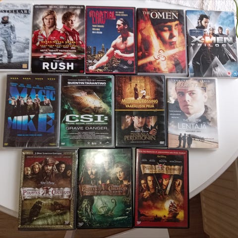 Setti uusia, käyttämättömiä leffoja yhä muoveissa.