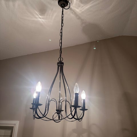 Kattokruunu. Iso ja näyttävä. Kunto hyvä, ei moitittavaa. Myydään uuden tieltä pois. Halkaisija noin 66 cm. Vain nouto Porista.