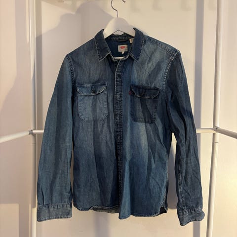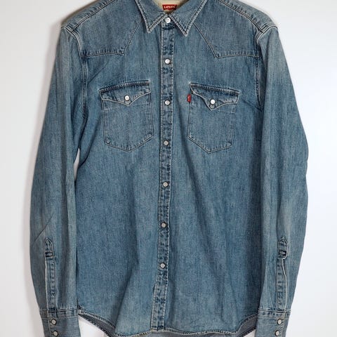 Nyt olisi tarjolla se perinteinen karjapaimenten paita! Myynnissä sinistä denim-kangasta oleva Levi'sin miesten paita. Kokomerkintä L, reiluhko mitoitus.