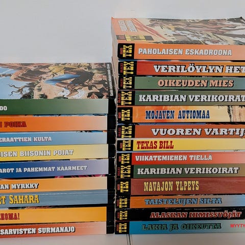 Kuusi Maxi Tex-sarjakuvakirjaa, joissa on erilaisia seikkailuja.