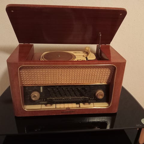 Radio-levysoitin/cd-soitin/c-kasettipesä. Toimiva peli missä kaikki ominaisuudet. Elämän jälkiä mutta toimiva. Kannessa viilto.