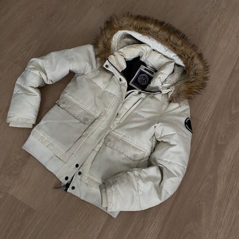 Superdry parkatakki vihreä naisten L. Pientä kokoa, sopii parhaiten M kokoiselle. Takissa on pitkä malli, vetoketjullinen etuosa ja huppu, jossa on irrotettava tekoturkisreunus. Sisävuori on pehmeää materiaalia, joka tarjoaa lisälämpöä. Takki sopii kylmempien säiden käyttöön.