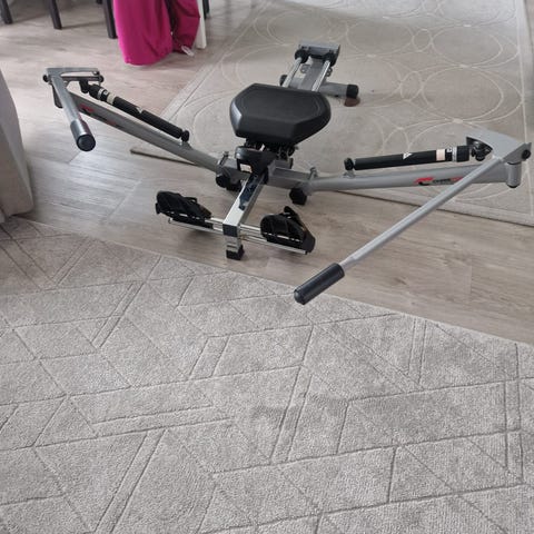 Raleigh fitness kuntopyörä&soutulaite onkin liian iso kotiini. On vain kasattu ja kokeiltu että toimii. Sitä voi siirtää alla olevien pyörien avulla ja saa myös pienempään kokoon säilytystä varten. Painoa sillä on noin 45 kg, joten vain nouto Kuninkaantammesta Helsingistä.