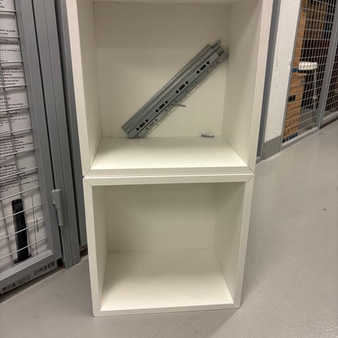 Hylly ei ole käytössä ja kokosimme hyllyn vain kuvausta varten, että näkee millainen hylly on.