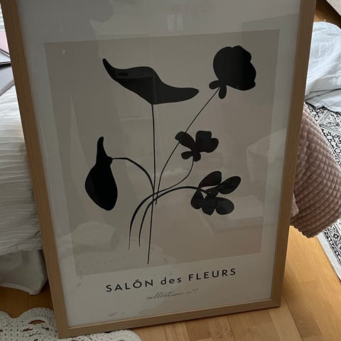 Myydään juliste ja mustat puukehykset 50x70 cm (Granit). 15e, nouto Pirkkalasta.