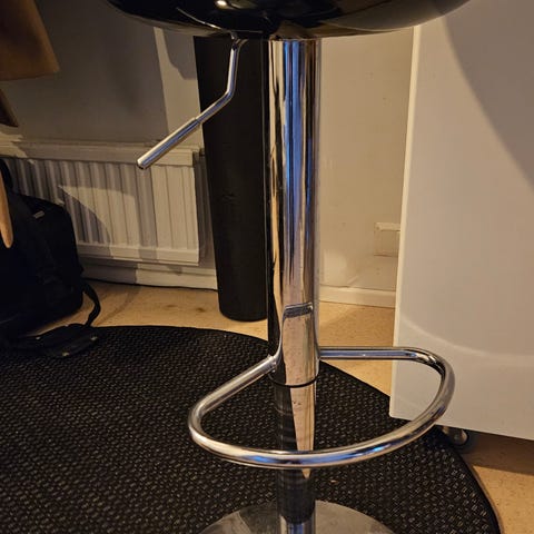 Myydään laadukas ja tukeva baarituoli. Runko kromattua metallia ja istuin sekä selkänoja mustaa nahkajäljitelmää. Tuoli on mukava ja jämäkkä istua, ei heilu.