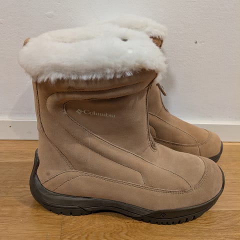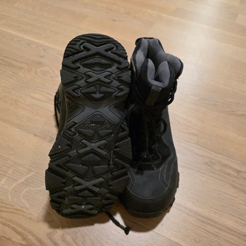Columbia talvikengät, koko 41, sisämitta 27 cm, väri valkoinen. Kengät olleet vähällä käytöllä itselle väärän koon vuoksi, ja ovat näin ollen hyvässä kunnossa. Valkoisessa kankaassa läheltä katsottuna jonkin verran haaleita värjäymiä. Laadukkaat ja kengissä on hyvä pito liukkaalla säällä.