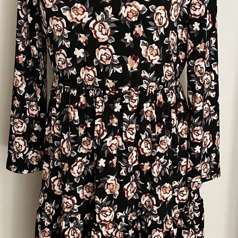 Fire & Glory musta kukkakuvioinen pitkähihainen mekko