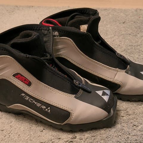 Käytetyt mutta ehjät Fischerin hiihtomonot koossa 36. Sidetyyppi NNN. Käytönjälkeä näkyy sisävuoren nyppääntymisenä. Noito tai postitus, postimaksu 9e.