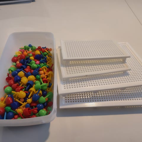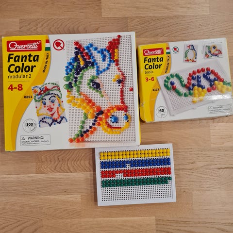Kaksi lautaa ja nuppeja. Ohjekirja mukana, mutta se on hieman jo kärsinyt. Itse peli moitteeton.
