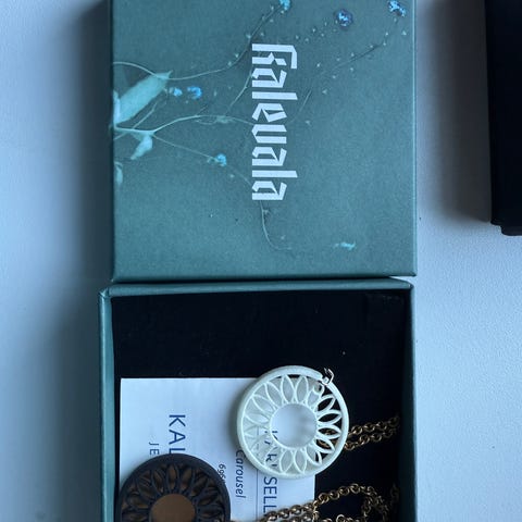 Koru täysin käyttämätön alkuperäisessa pakkauksessa ja hoito-ohjeet yms. mukana. Koru on pronssia ja alkuperäinen ketju mukana.