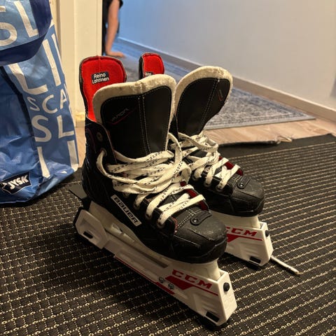 Myydään kuvan Bauer NS- luistimet. Kokotietoa ei näy, mutta verrattuna muihin, koko on 34 tai 34,5. Luistimet ovat muuten hyvässä kunnossa, mutta toisen nilkan kangas hieman repsottaa. Ovat olleet vain hallikäytössä. Juuri teroitettu 22mm. laikalla (profiili ~ ellipse), joten ei muuta kuin jäille ja pelaamaan! Maksu mobilepay ja mieluiten nouto. Lisämaksusta voin kuljettaa pk-seudulle.