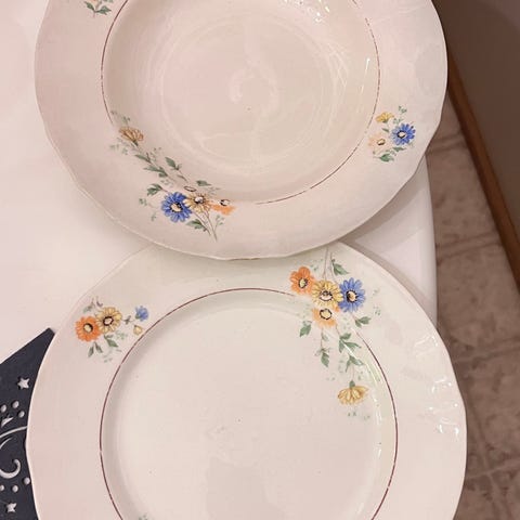 Kuvanmukainen aida aroman lautassetti. 4 ruokalautasta, 4 leipälautasta.