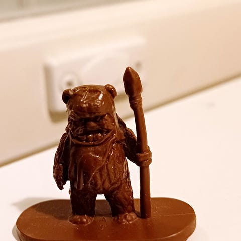 Kuvan mukainen Ewok figuuri. Jaloissa lukee LFL 1984 ja TAIWAN.