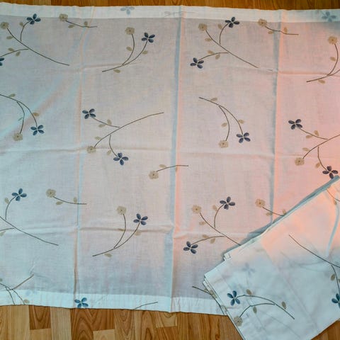 Paketti sisältää kaksi sivuverhoja joiden mitat on 135x210cm per verho, sekä kaksi kappaa, joiden mitat on 210x50cm per kappa.