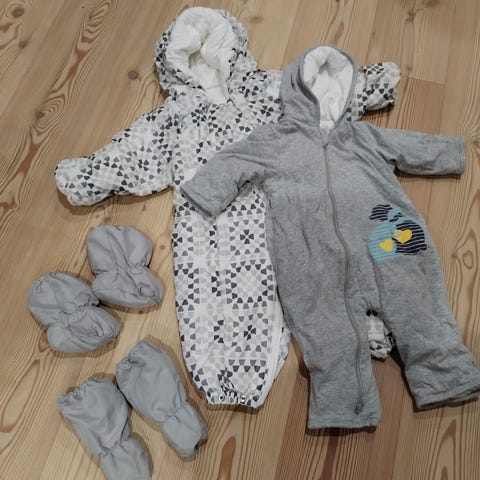 Lasten haalari, kypärämyssy, pipot ja hanskat+töppöset