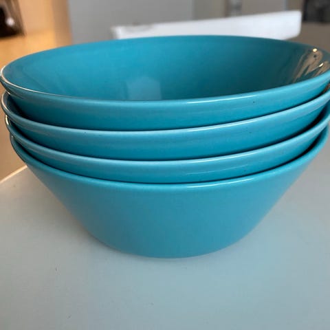 Keltaisia ja vaaleansinisiä astioita