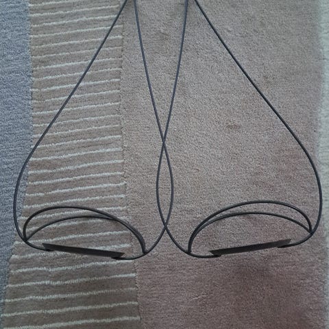 Uudenveroinen metalliamppeli. Väri valkoinen ja kaaren halkaisija 35cm.
