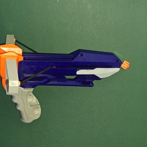 Nerf N-Strike lasten pehmoammusleikkipyssy. Pyörivä sylinteri, joka mahtuu kuusi vaahtomuovinuolta.
