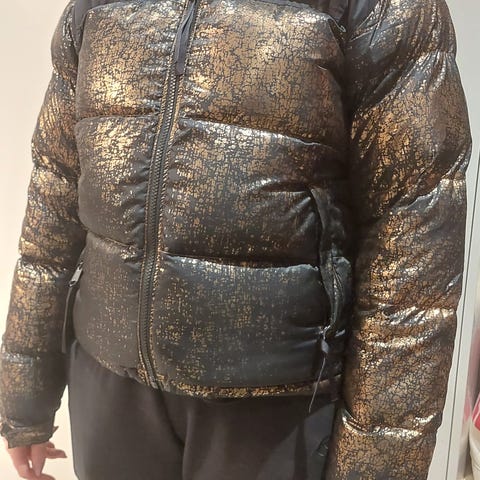 The North Face Talvitakki untuvamateriaalista, väriltään musta, naisten koko S. Takki on suunniteltu tarjoamaan lämpöä ja suojaa kylmille säille.