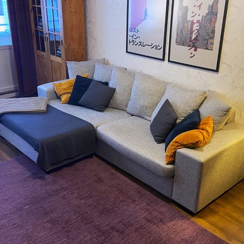 Myynnissä Belluksen valmistama jäätävän iso divaanisohva. Belluksen sohvat tunnetaan erittäin laadukkaista puu / vaneri rungoistaan. Sohvasta ei lastu / huonekalulevyä löydy. Sohvan runko ja jouset ovat ehjät. Kankaat todella siistikuntoiset. Istuin ja selkätyynyjen kankaat ovat irroitettavissa pesuun. Lisäksi istuin ja selkätyynyihin on tehtaalta lähtiessään valittu ympäriverhoillut tyynyjen päälliset. Tyynyt siis käännettävissä. Tämä luonnollisesti tuplaa kankaiden, että tyynyjen käyttöiän. Mukaan saa halutessaan myös vaihtopäälliset istuintyynyihin. Ne eivät täysin virheettömät, mutta siistit. Sohvassa divaanin puolisuus vaihdettavissa. Huomioithan sohvan koon mikäli asut kerrostalossa. Sohva ei taitu ahtaimmissa rappukäytävissä (katso viimeinen kuva jossa sohva purettu niin pieniin osiin kun sen saa). Isoimman osan koko purettuna noin 250cm x 110cm. Sohvan korkeus: 68cm, joten sohva kyljelleen käännettynä mahtuu sisään ihan normi ovesta. Tämä sohva on erittäin iso ja laadukasta sohvaa etsivän valinta. Sohvan hinta: 649e.