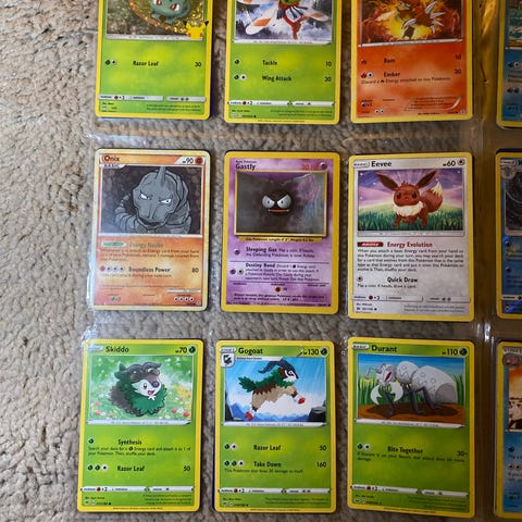 Keräilykorttipakka, jossa erilaisia Pokémon-hahmoja. Kortit sisältävät hahmojen kuvat, tyypit ja hyökkäystiedot. Soveltuu Pokémon-korttipelien pelaamiseen ja keräilyyn. Koko sivu 9 korttia 5€