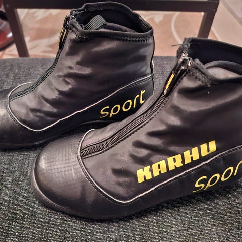 Kuin uudet hiihtomonot. Erittäin mukavat jalassa. Jos lasta ei hiihto kokoaikaisesti kiinnosta, näillä on helppo kävellä. Nämä saa myös lapsi itse jalkaan todella helposti. Pehmeät.