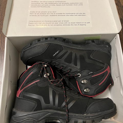 Haltin nastakengät koko 44. Kerran käytetty ja väärän kokoiseksi todettu, ovat kuin uudet.