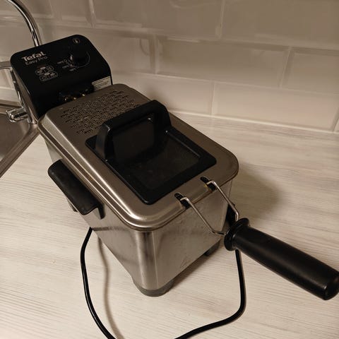 Tefal oleoclean Pro friteerauskeitin, jossa on ruostumattomasta teräksestä valmistettu kori ja säädettävä lämpötila.