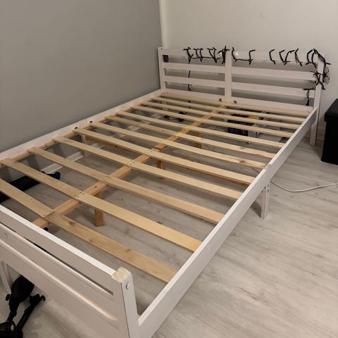 Koko 86 x 134,5 cm, korkeus 18 cm. Pyörät alla.