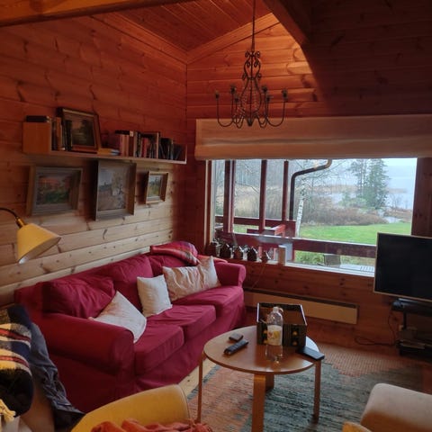Sohva ollut käytössä 6vuotta. Koiria ollut taloudessa aiemmin, mutta putsattu sen jälkeen hyvin. Verhoilu sohvasta mennyt rikki koiran takia, muuten ei ole vikaa. Hyvä istua, mukava, pehmeä. Myydään uuden sohvan takia.