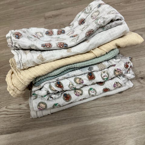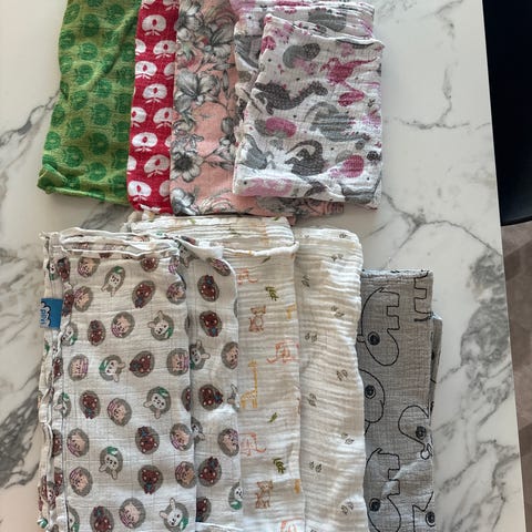 Vauvan harsot, 4 kpl. Kuvioituja 3 kpl ja yksi harmaa.