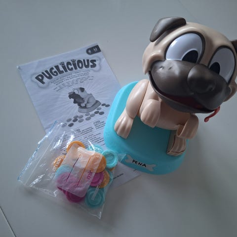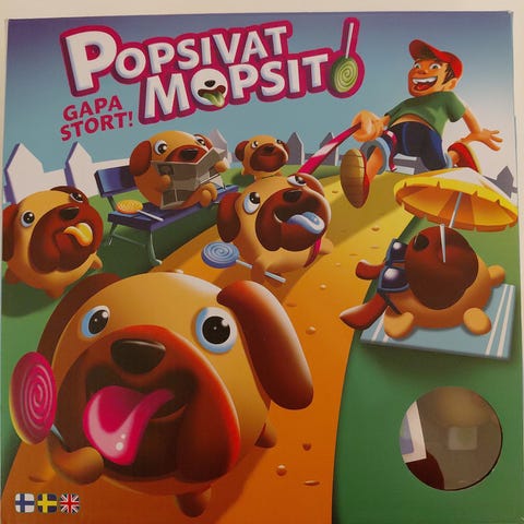 Popsivat mopsit muistipelin tyyppinen peli. Pelattu vähän, laatikko ei silti ihan uudenveroinen. Hyvässä kunnossa kuitenkin.