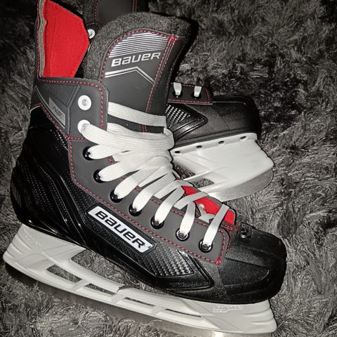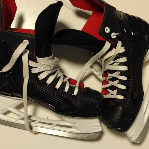 Bauerin hyvin nilkkaa tukevat hokkarit. Hyvässä kunnossa ja käytetty vain yhden kauden.