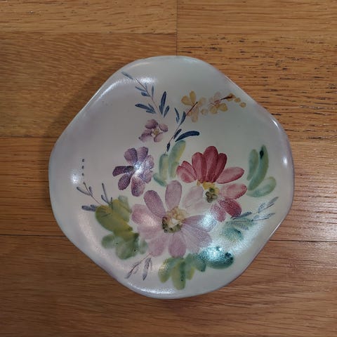 Arabian valmistama koristelautanen. Kaunis hedelmäaiheinen kuva ja kultareunus. Sopii seinäkoristeeksi tai osaksi vintage-henkistä sisustusta.