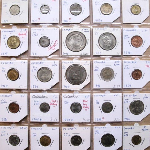 Erä 1,5 kg 50 Centavos -alpaca-kolikoita useita (1927–1968) (Ei lähtöhintaa)