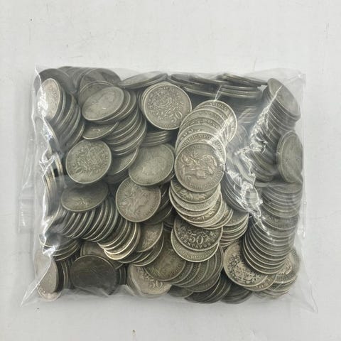 Portugali. Lote de 400 Moedas de 50 Centavos em Alpaca, Várias Datas, Vários