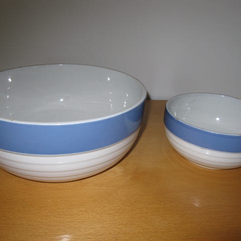 Arabia siniraita kulho, halkaisija 18cm. Piippuleima 1932-1949.