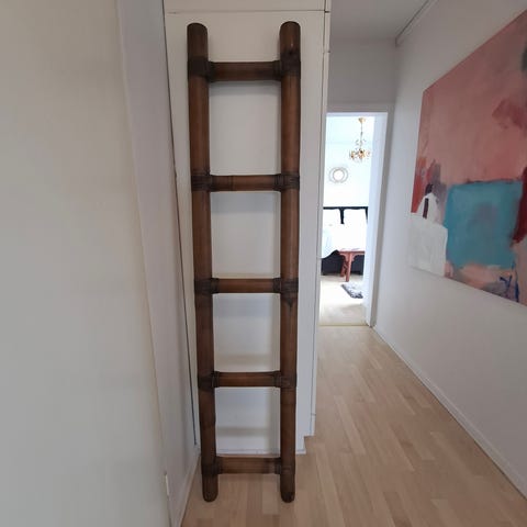 Hakusanat: musta, muotoilu, askelma, kevyt, käytännöllinen, luonnonmateriaali, naarmut, siirrettävä, kuluma, nostalginen, bambutikkaat, koriste, retro, sisustus