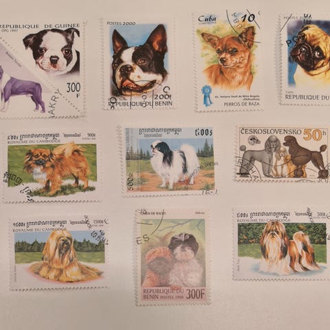 Hinta 0,50eur/kpl. Rotuina tiibetinspanieli, cavalierkingcharlesinspanieli, lhasa apso, mopsi ja villakoira.