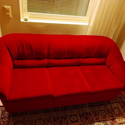4- istuttava vuodesohva. Osan selkätuista saa ylös kuten kuvissa näkyy. Sohvassa muutama vika jotka näkyvät kuvissa. Ovh yli 800 €.